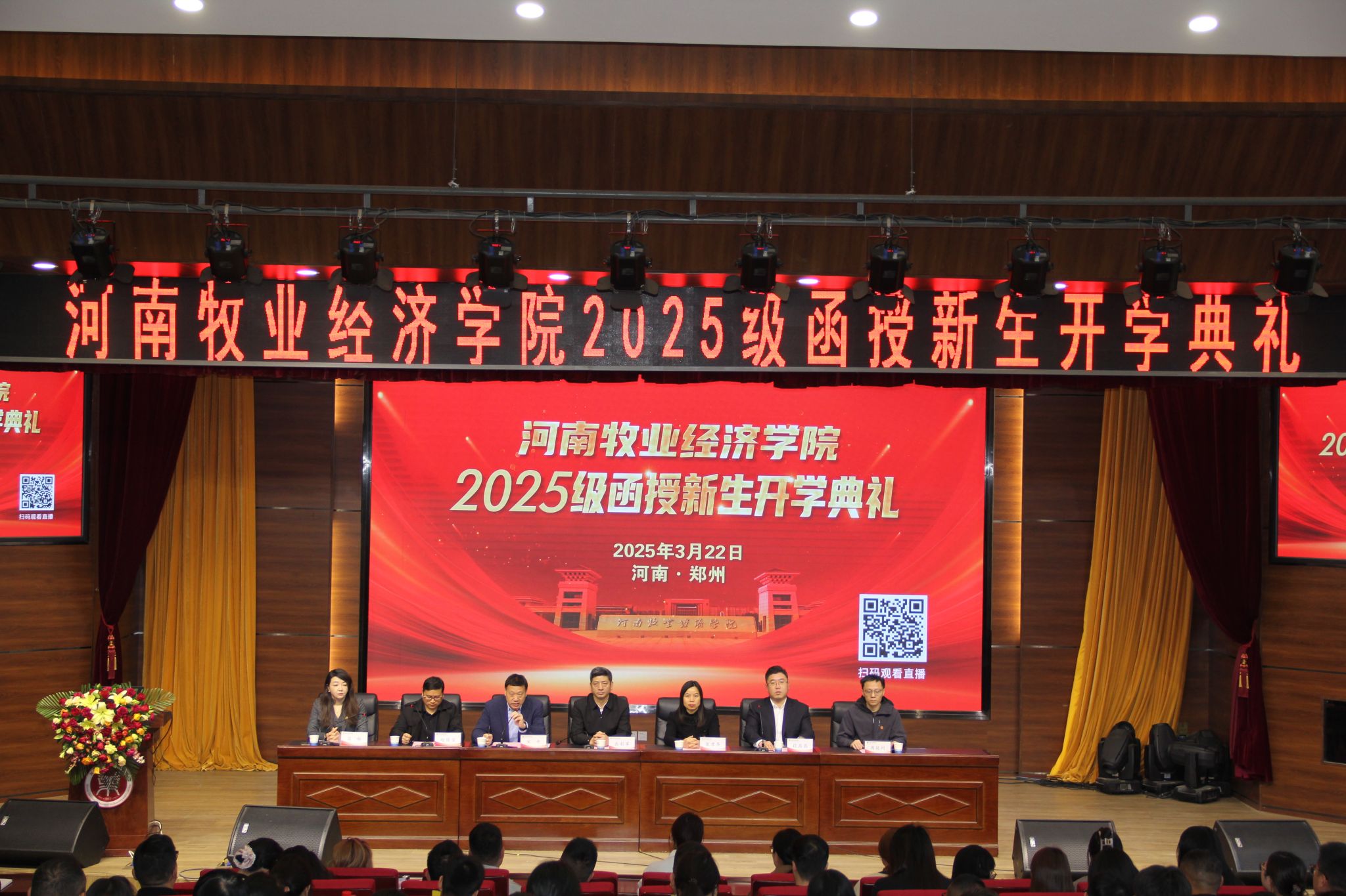 3月22日,我校2025级函授新生开学典礼在龙子湖校区尚严楼A100报告厅举行。副校长岳彩军出席典礼并致辞,ok138cn太阳集团古天乐相关负责人、200余名新生现场参会,2600余名新生通过线上直播参加。典礼由ok138cn太阳集团古天乐院长宋平主持。