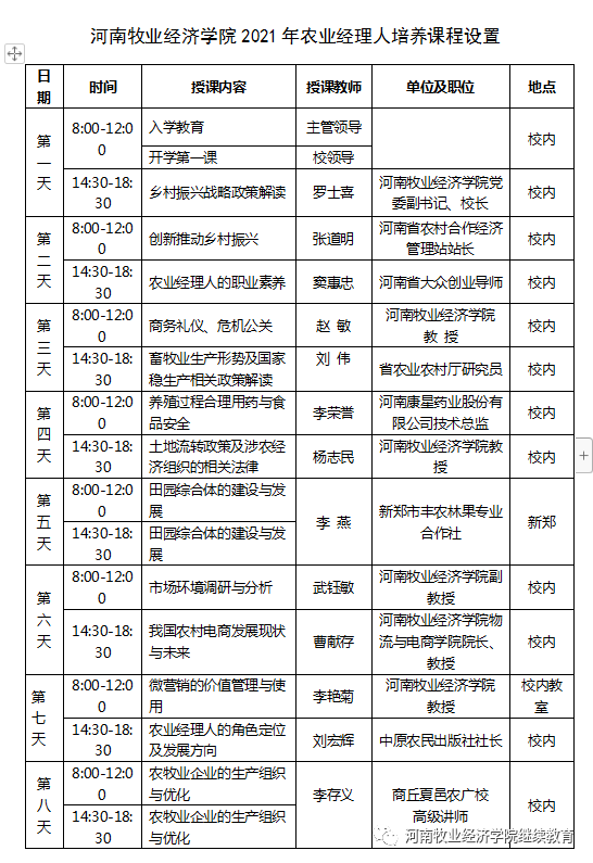 1、培训内容涵盖农业经理人基本素养、涉农相关法律与组织责任、市场营销、生产管理、人力资源管理、采购与库存管理、财务管理、目标管理、实训模拟等九大模块,详见培训方案(附后)。