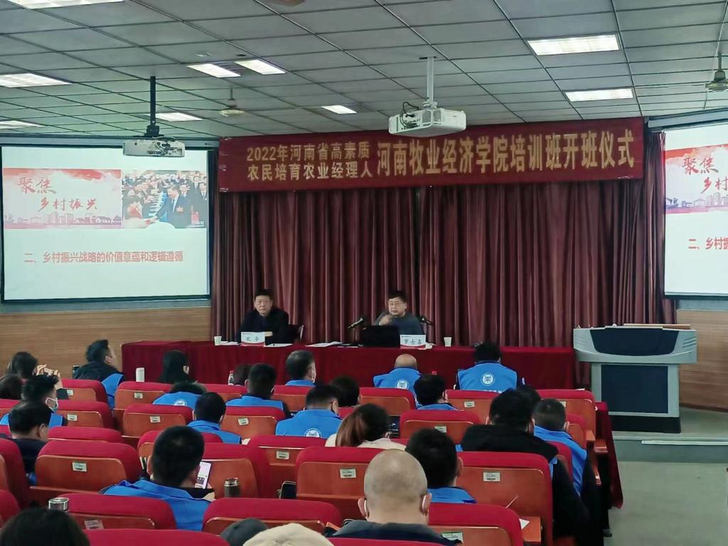 1月5日,由河南省农业农村厅主办、我校承办的2022年河南省高素质农民培育农业经理人培训班在北林校区隆重开班。校长罗士喜教授以《百年未有大变局背景下 乡村振兴的价值意蕴、逻辑遵循与实现路径》为题,为培训班作首场报告。ok138cn太阳集团古天乐科以上干部和培训班全体学员参加了报告会。报告会由ok138cn太阳集团古天乐院长宋平主持。