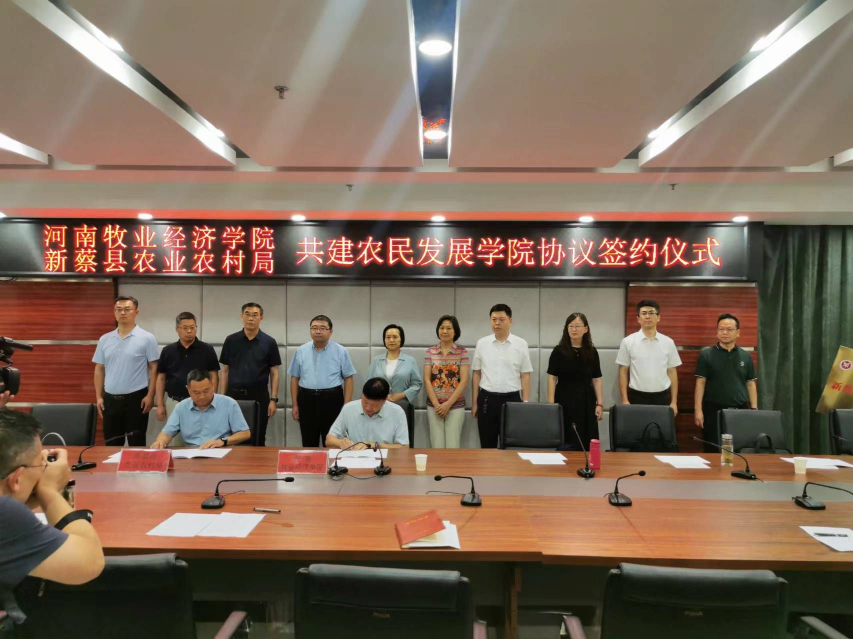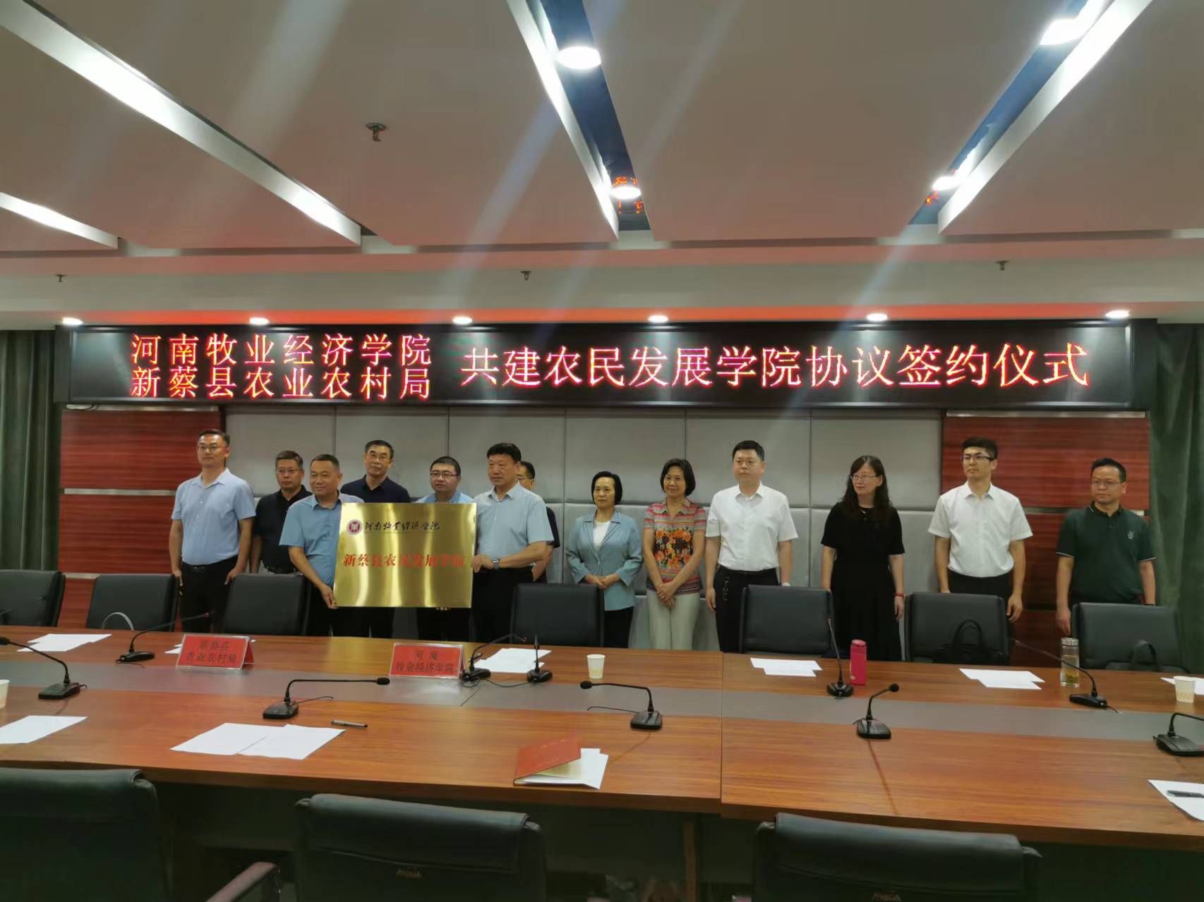 “新蔡县农民发展学院”的成立标志着我校与新蔡县结对帮扶工作又迈上一个新台阶。共建农民发展学院,既是校地合作的有益实践,又是产学研融合发展的具体体现,必将进一步深化优质资源对接、共享、交流,加强新蔡县农村人才培养,实现高校支持地方建设、地方助推高校发展的双赢局面。 “新蔡县农民发展学院”按照国务院、河南省政府关于推进乡村振兴战略部署,立足区域经济社会发展需求和县情,整合新蔡县涉农培训项目和培训资源,探索“政府主导、学院主体、部门协调、项目运作”的办学模式。立足开放教育和职业教育,实现职教资源的优化配置和共享;紧紧围绕新蔡县农业特色主导产业发展,支持农民提升教育水平,以提高农民综合素质和从业技能为核心,以技能认定管理为手段,以政策扶持为动力,探索高素质农民培育的路径和方法,培育一批经营管理型、专业生产型和技能服务型高素质农民,加快构建新型农业经营主体队伍,着力推动机制创新和政策创设,构建农民教育培训新发展格局;面向农村从业人员开展职业技能和实用技术培训,推进技能培训与学历教育并举、引进培育与就地培育并重、提升素质能力与延伸服务协同,主要培养农业农村现代化亟需的高素质农民队伍;面向农业企业和农民开展多样化开放式科技信息、市场信息、文化信息、生活信息咨询服务;服务乡村建设和乡村治理。大力普及“三农”政策,推动乡村振兴进课堂,培养一批乡村建设、乡村规划和乡村治理人才。为推进新蔡县乡村振兴、加快农业农村现代化提供一定的人才和智力支撑。 为进一步推进“新蔡县农民发展学院”落地生根,6月20日下午,驻新蔡县孙召镇大马庄第一书记杨军陪同宋院长一行与新蔡县农业农村局李斌局长就农民发展学院章程、学院体制架构、具体合作项目进行了建设性讨论,并对合作开展成人学历教育和非学历教育有关内容达成多个意向。6月21日,双方冒风雨深入到化庄乡、李桥镇、砖店镇等三个乡镇的养殖专业户、种粮大户进行走访调研,了解农业企业和农民的学习及发展需求,掌握农村产业发展方向,为农民发展学院深入开展下一步工作打下了坚实基础。