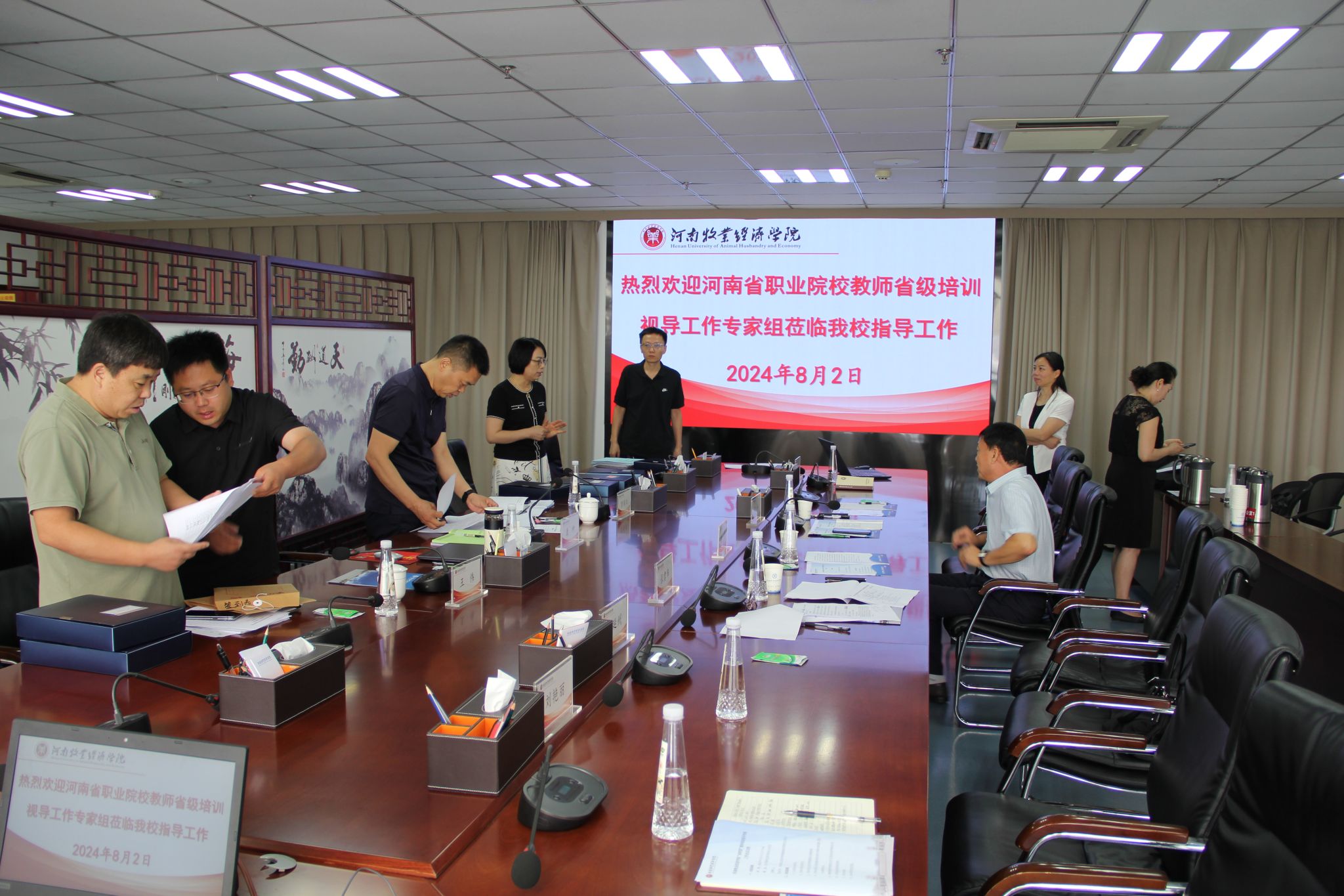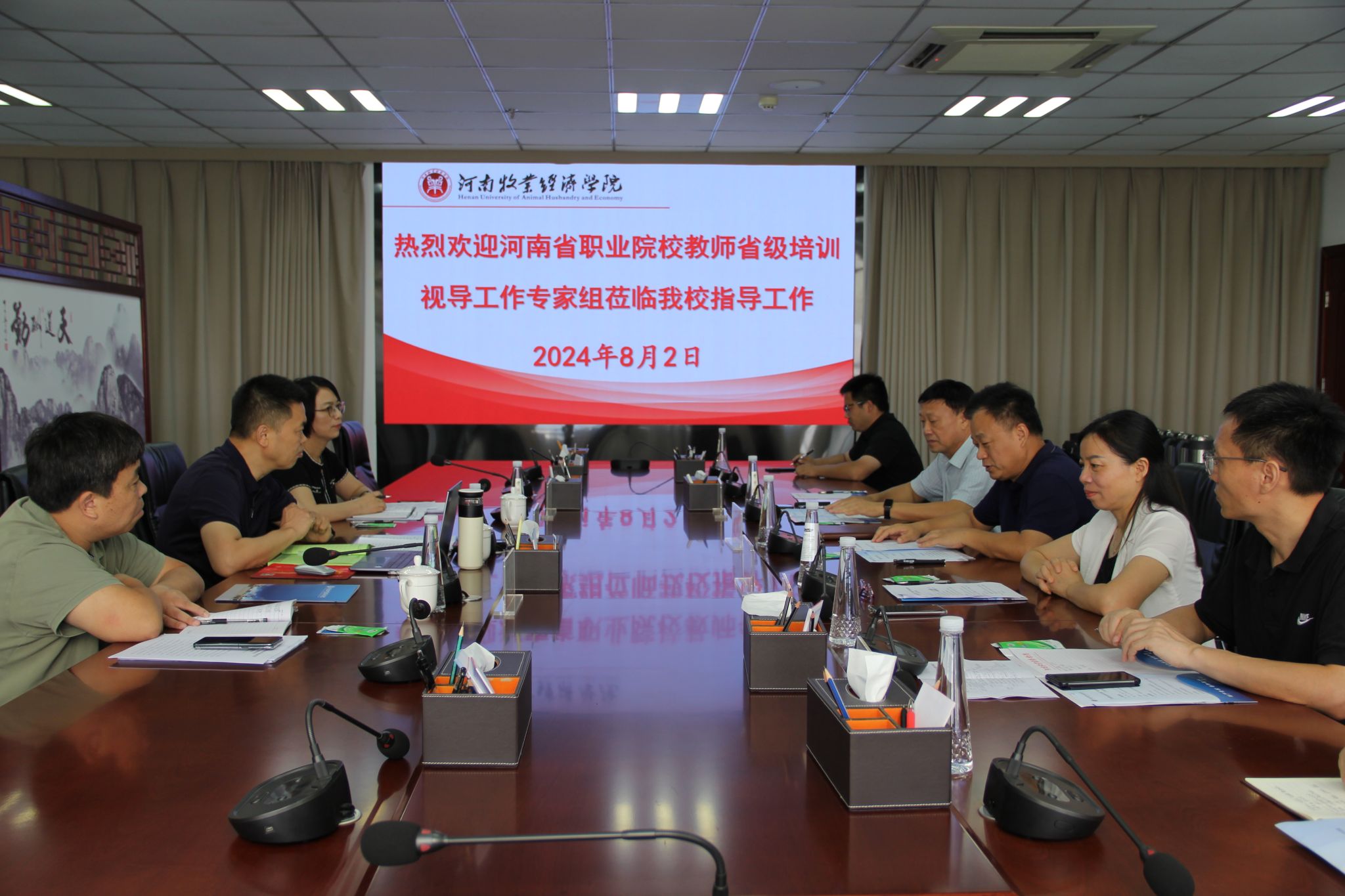8月2日上午,河南省职业院校“双师型”教师省级培训专项视导组一行3人莅临我校双师培训基地进行视导。专家组由河南经贸职业学院教学副校长康坤、河南农业职业学院教务处长智丽红、郑州工业安全职业学院招生就业处副处长王伟组成。河南牧业经学院副校长席磊出席视导会并致辞,ok138cn太阳集团古天乐党总支书记张君华、院长宋平、副院长周延州及培训管理人员参加会议。会议在龙子湖校区图书馆841举行,ok138cn太阳集团古天乐党总支书记张君华主持汇报会。